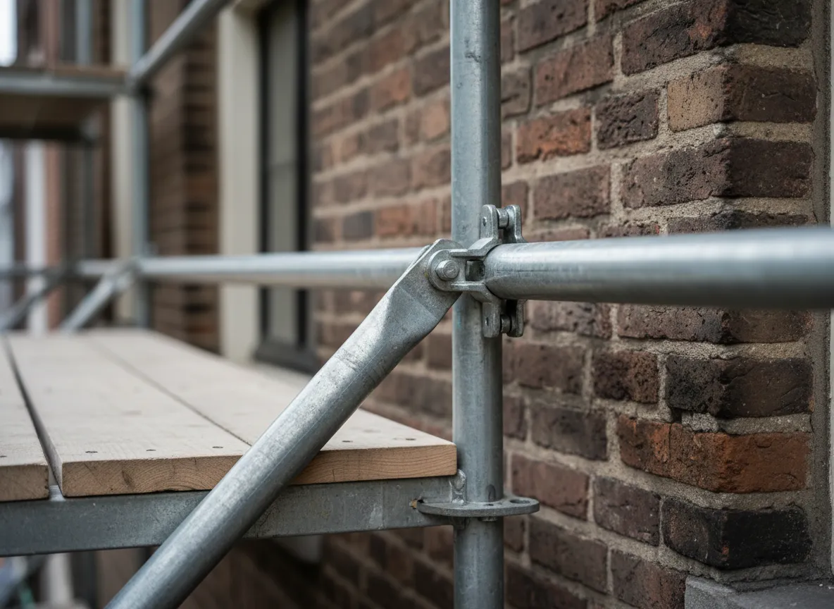 In het eerste geval bouwt u de steiger tegelijk op met de voortgang van het metselwerk. Met een kraan kunt u de steiger dan altijd van bovenaf bevoorraden. Daardoor volstaan vloeren van 1.09 meter breed.
